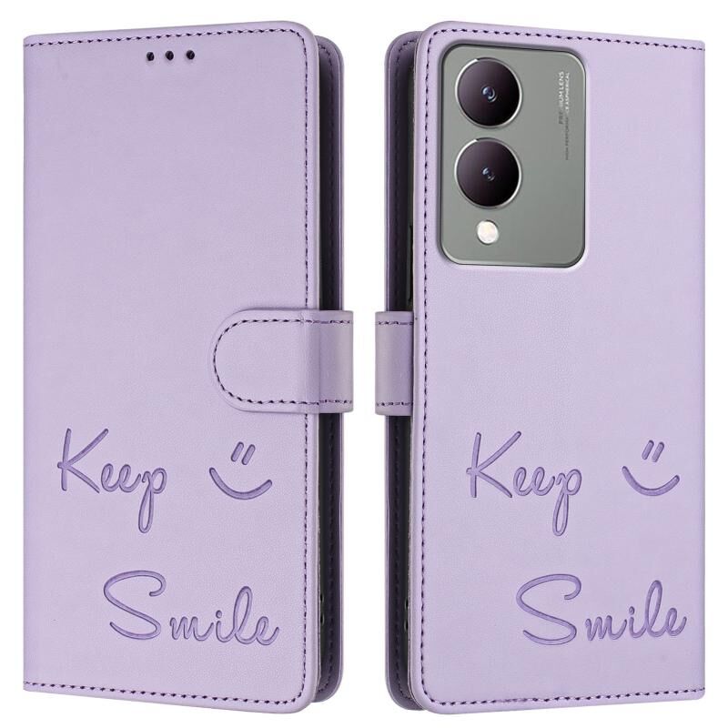 Για vivo Y17S 5G Ινδία χαμόγελο ανάγλυφο RFID δερμάτινη θήκη τηλεφώνου (Light Purple)