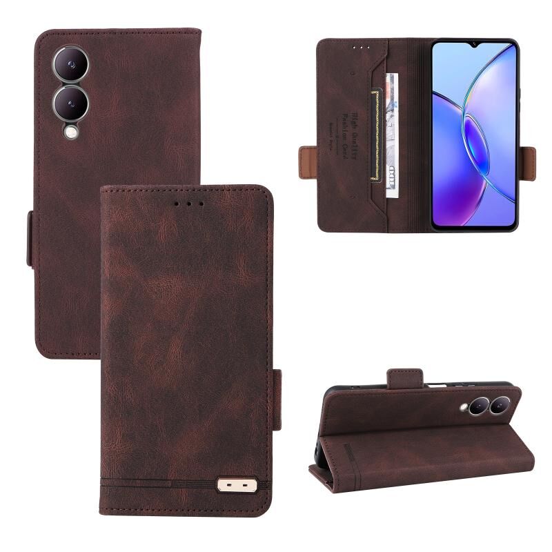 Θήκη τηλεφώνου δερμάτινη με μαγνητικό κούμπωμα για vivo Y17s (Καφέ)