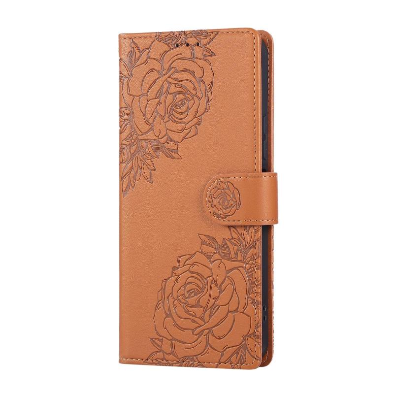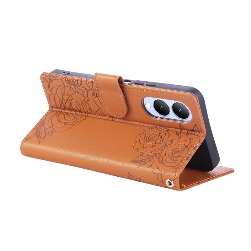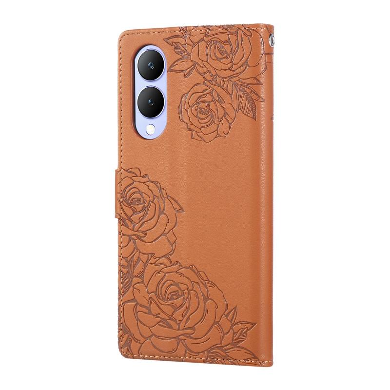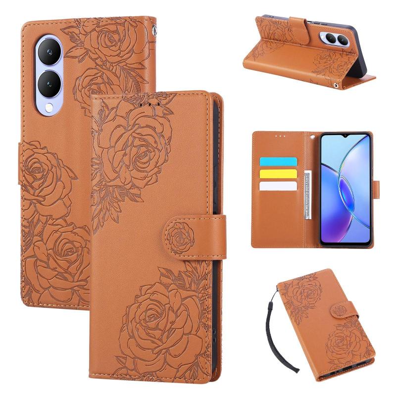 For vivo Y17s Rose Flower Embossed 3-Card Slots Leather Phone Case(Brown)