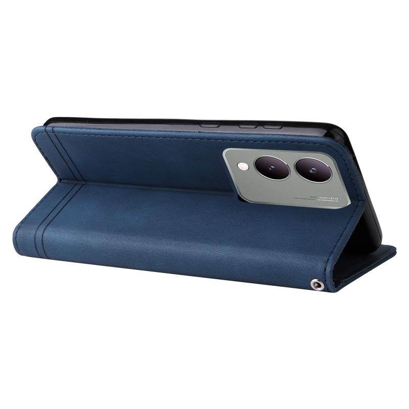 For vivo Y17s Skin Feel Life Tree Metal Button Leather Phone Case(Blue)