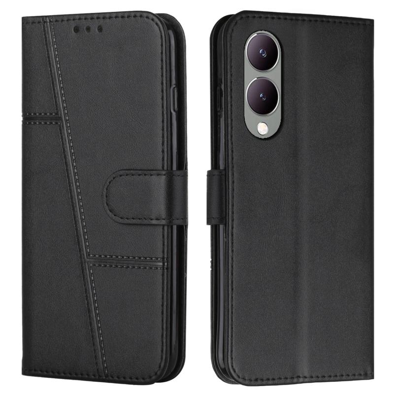 For vivo Y17s Stitching Calf Texture Buckle Leather Phone Case(Black)