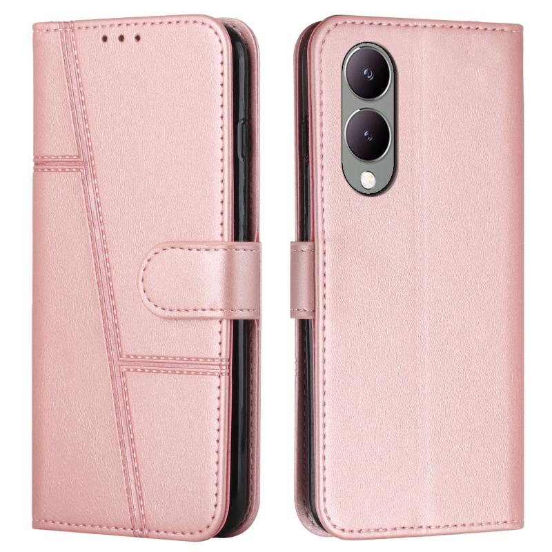For vivo Y17s Stitching Calf Texture Buckle Leather Phone Case(Pink)