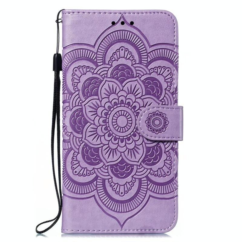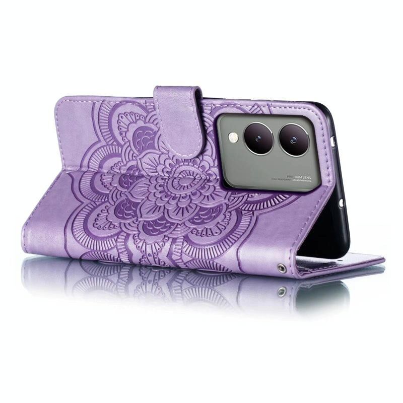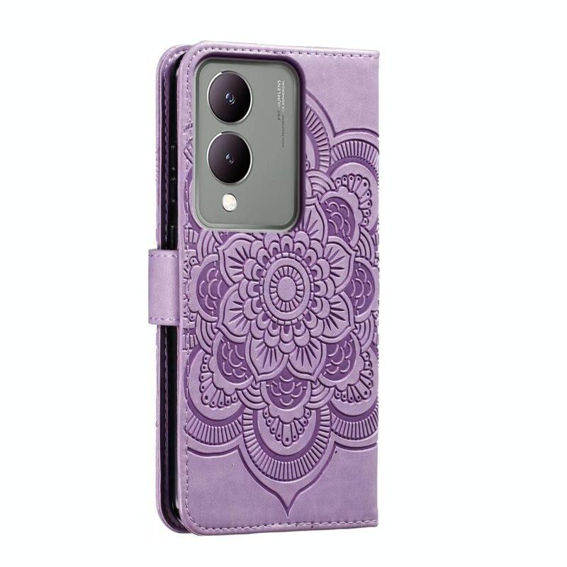 Για vivo Y17S Sun Mandala ανάγλυφο μοτίβο τηλέφωνο δερμάτινη θήκη (μωβ)