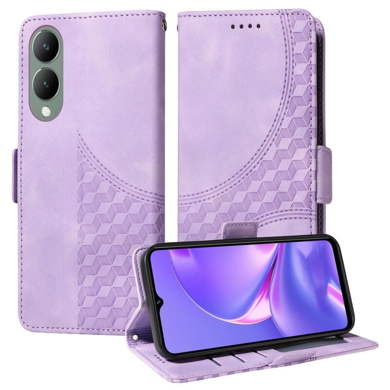 Θήκη τηλεφώνου από δέρμα με ανάγλυφο ρόμβο και αστρικό σχέδιο για vivo Y17s / Y36i 5G (Πράσινο)
