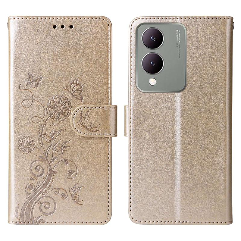 For vivo Y17s / Y36i 5G / Y28 5G Embossed Butterfly Flowers Leather Phone Case(Gold)