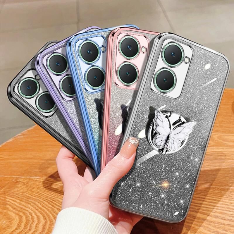 Για το vivo Y18 Επιμεταλλωμένο διαβάθμιση Glitter πεταλούδα κάτοχος TPU τηλέφωνο υπόθεση (ασημί)