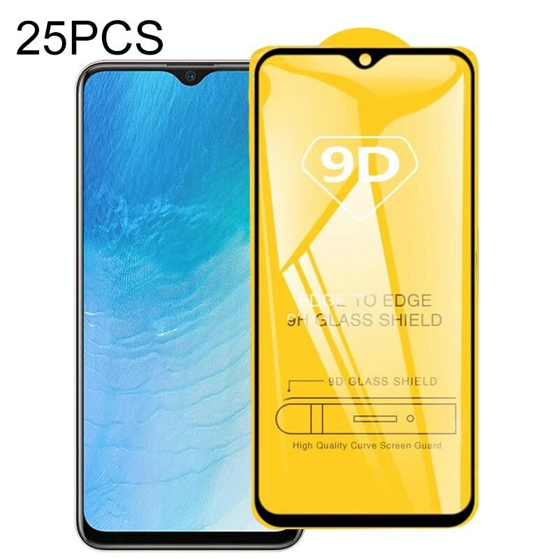 For Vivo Y19 25 PCS 9D Full Glue Full Screen Tempered Glass Film