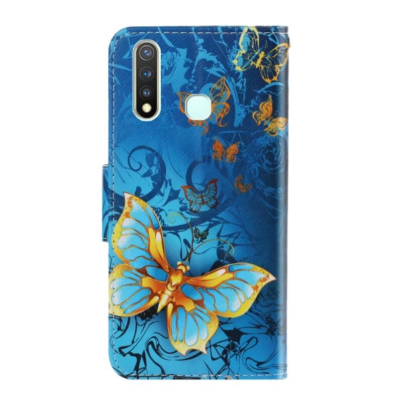 Θήκη για Vivo Y19 3D με έγχρωμη σχεδίαση, οριζόντια αναδίπλωση από δερματίνη PU με βάση & υποδοχές καρτών & πορτοφόλι (Jade Butterfly)