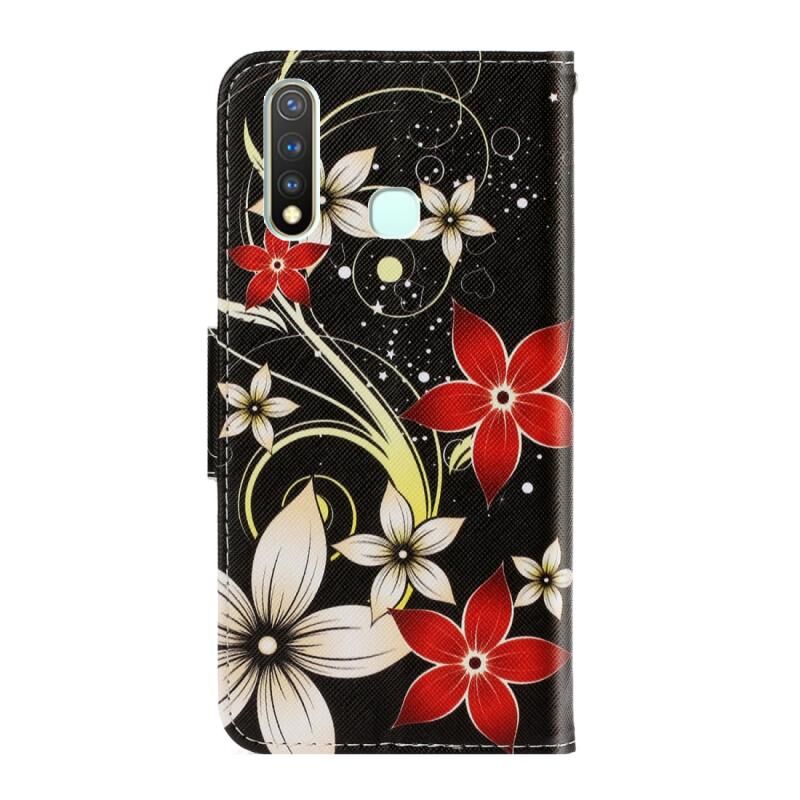 Θήκη για Vivo Y19 3D πολύχρωμη ζωγραφική οριζόντια αναδίπλωση από δερματίνη PU με βάση & υποδοχές καρτών & πορτοφόλι (Κόκκινο Λουλούδι)