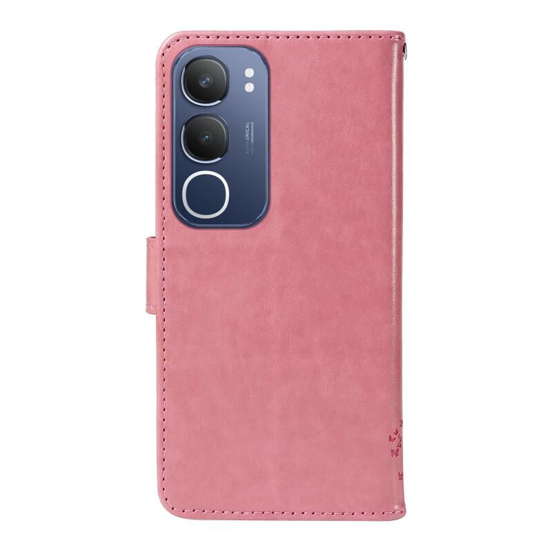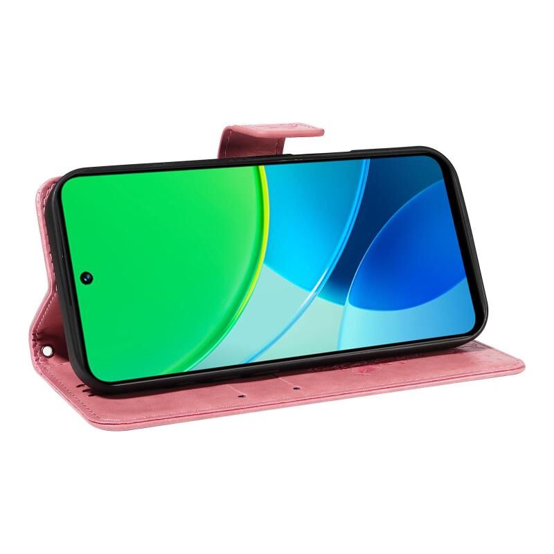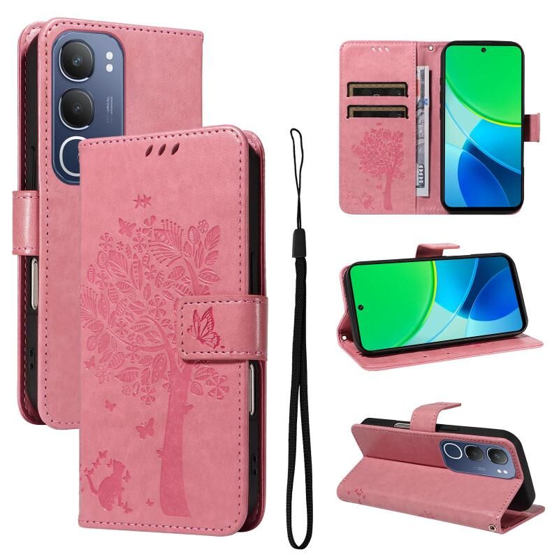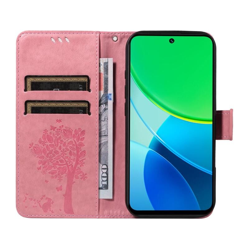 Θήκη τηλεφώνου από δέρμα με σχέδιο αναγλύφου δέντρου & γάτας για vivo Y19 4G (Ροζ)