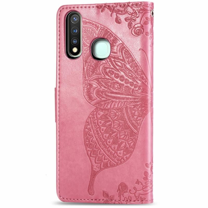 Θήκη δέρματος οριζόντιας αναδίπλωσης για Vivo Y19 Butterfly Love Flower Embossed με βάση στήριξης / υποδοχή κάρτας / πορτοφόλι / κορδόνι (ρόζ)