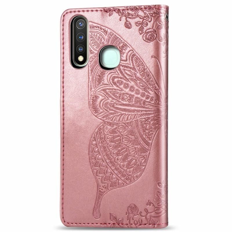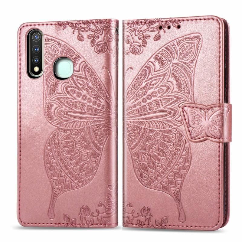 Θήκη δέρματος οριζόντιας αναδίπλωσης για Vivo Y19 Butterfly Love Flower Embossed με βάση στήριξης / υποδοχή κάρτας / πορτοφόλι / κορδόνι (Μαύρο)