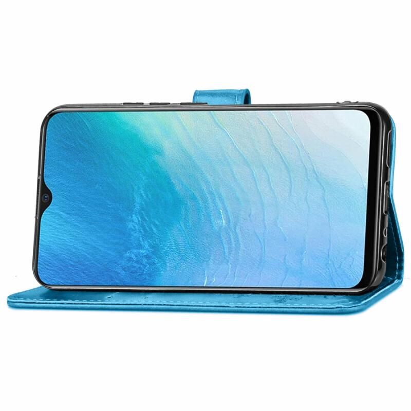 Θήκη προστασίας κινητού τηλεφώνου από δέρμα για Vivo Y19 με κουμπωτή αγκράφα τριφυλλιού, θηλιά, υποδοχή κάρτας, λειτουργία πορτοφολιού & βάσης (Μπλε)