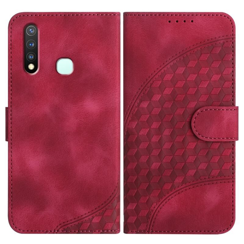 Θήκη δερμάτινη για vivo Y19/U3/Y5s/Z5i/U20 με ανάγλυφο σχέδιο ελέφαντα και κορδόνι (Ροζέ κόκκινο)