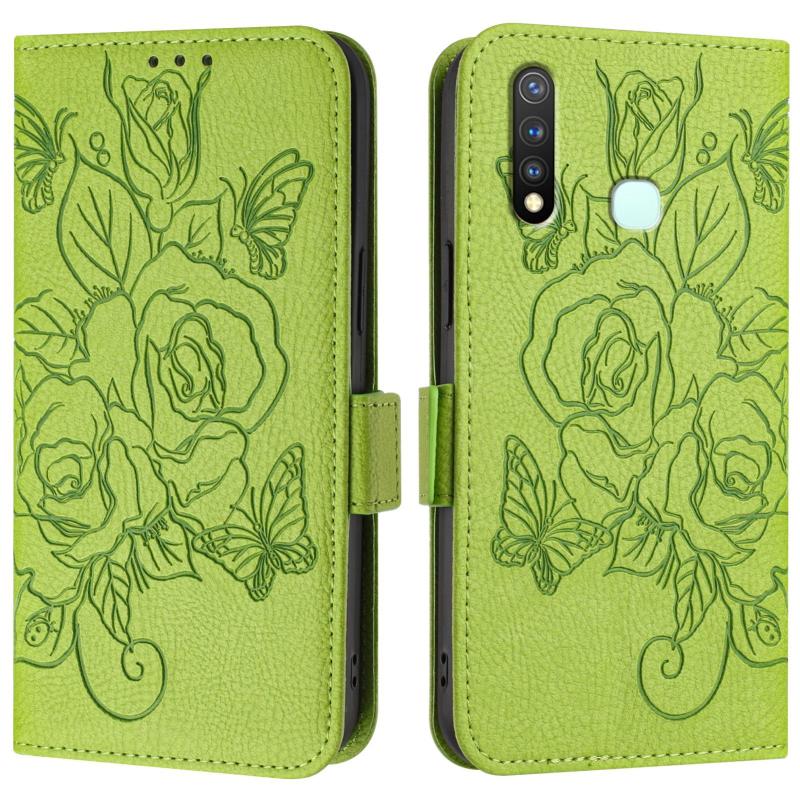 Θήκη τηλεφώνου από δέρμα με ανάγλυφο τριαντάφυλλο και προστασία RFID κατά της κλοπής για vivo Y19 / U3 / Y5s / Z5i / U20 (Πράσινο)