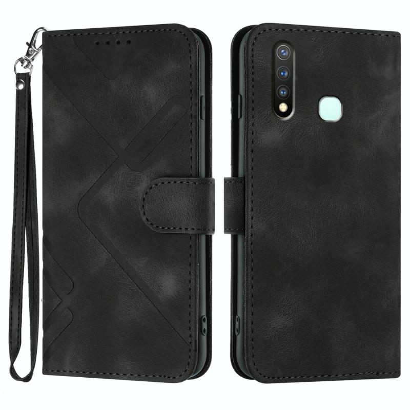 For vivo Y19/U3/Y5s/Z5i/U20 Line Pattern Skin Feel Leather Phone Case(Black)