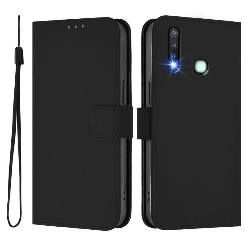 For vivo Y19 / U3 / Y5S / Z5i / U20 Skin Feel Solid Color Leather Phone Case with Lanyard(Black)