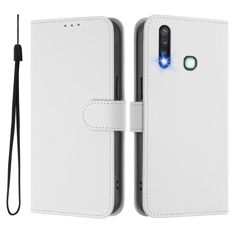 Θήκη τηλεφώνου από δέρμα με συμπαγή χρώματα και λουρί για vivo Y19 / U3 / Y5S / Z5i / U20 (Λευκό)