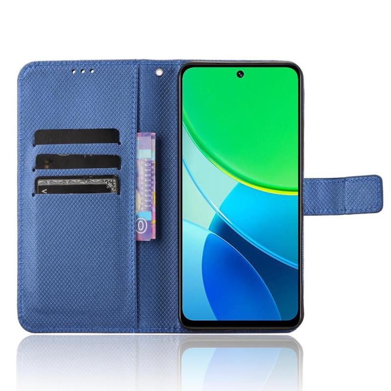 Θήκη τηλεφώνου για vivo Y19s 4G από δέρμα με υφή διαμαντιού (Λευκό)