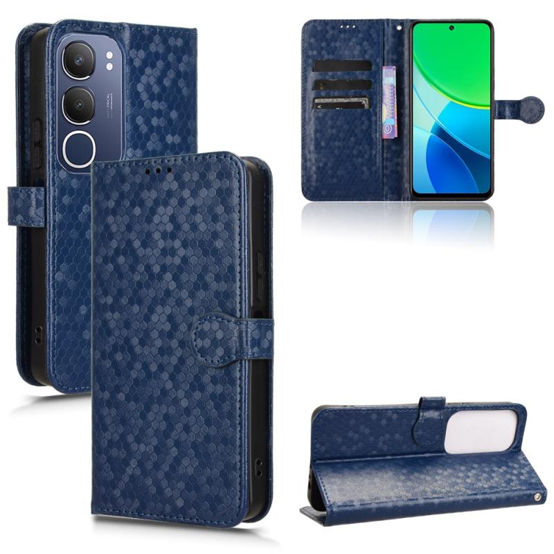 For vivo Y19s 4G Global Honeycomb Dot Texture Leather Phone Case(Blue)