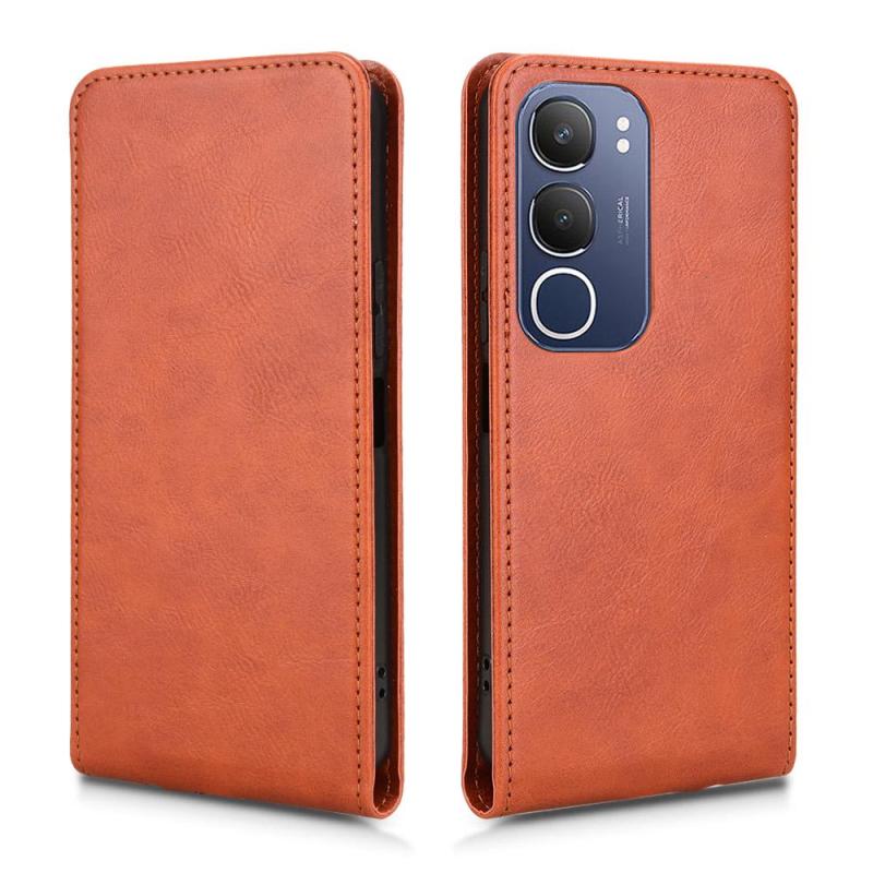For vivo Y19s 4G Global / Y29 5G Indian Magnetic Vertical Flip Leather Phone Case(Brown)