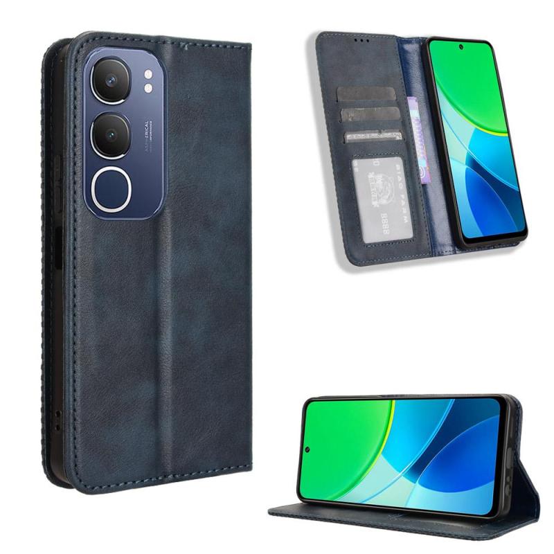 For vivo Y19s 4G Magnetic Buckle Retro Texture Leather Phone Case(Blue)
