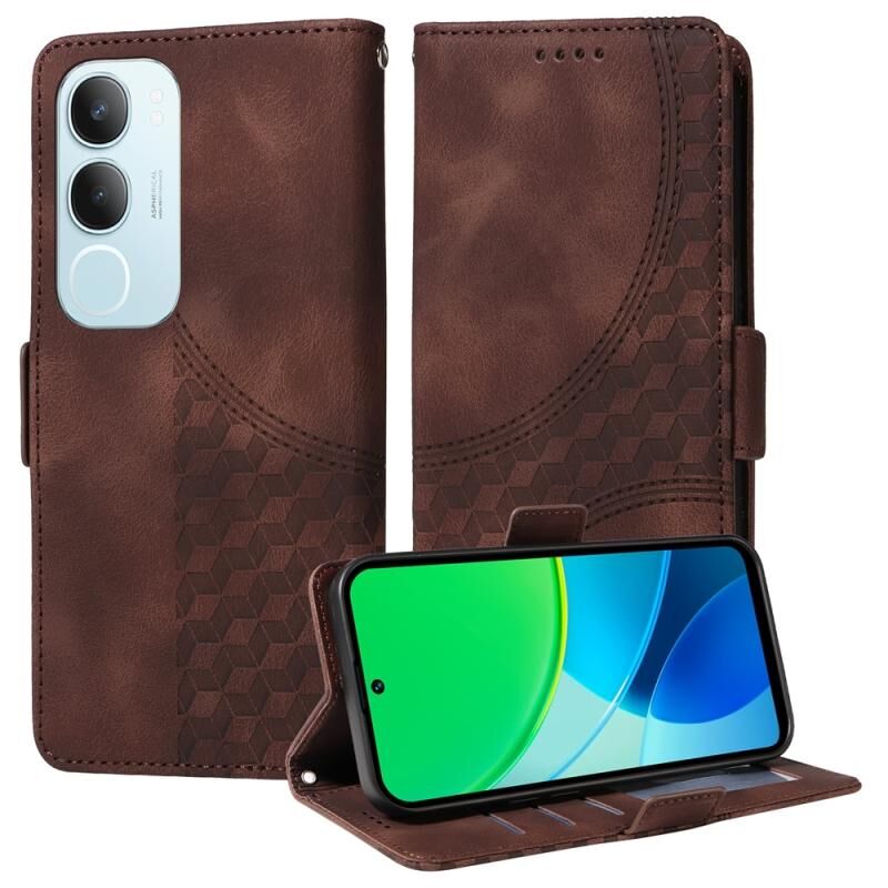Θήκη τηλεφώνου για vivo Y19s με ανάγλυφο ρόμβο και δέρμα με αστρικό σχέδιο (Πράσινο)