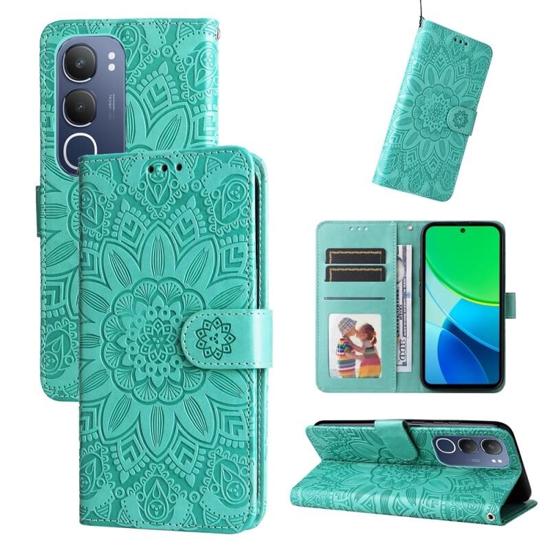 Θήκη τηλεφώνου δερμάτινη με ανάγλυφο ηλίανθο για vivo Y19s (Κόκκινο)