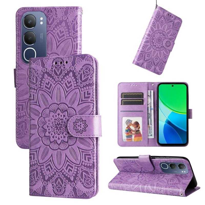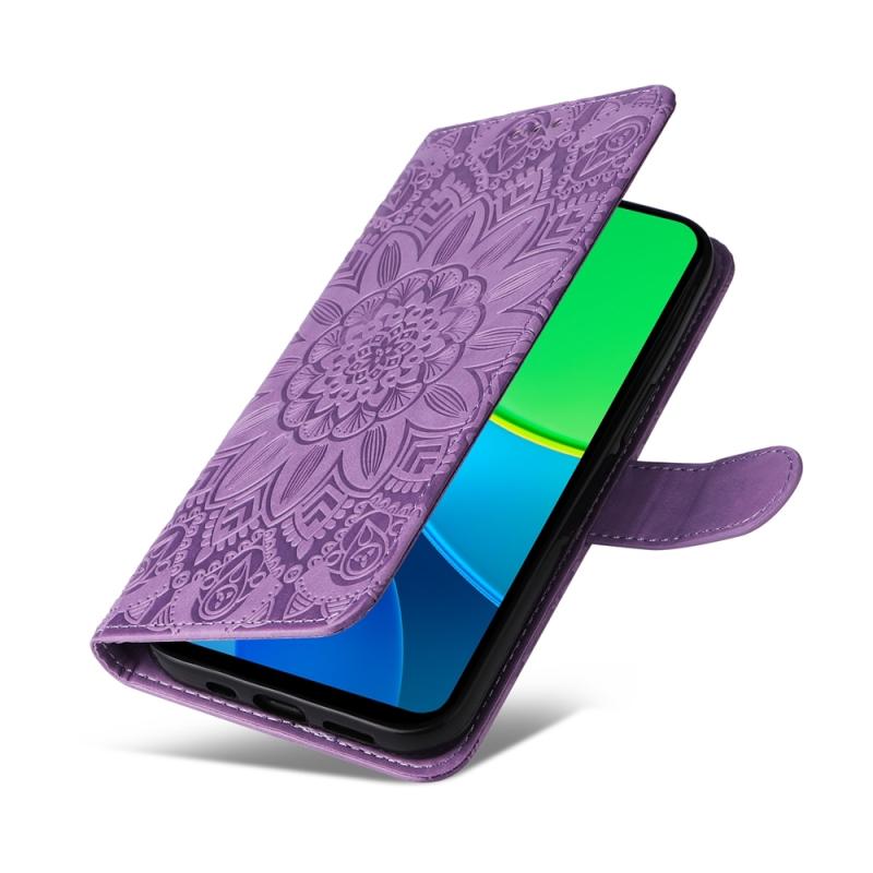 Θήκη τηλεφώνου δερμάτινη με ανάγλυφο ηλίανθο για vivo Y19s (Κόκκινο)