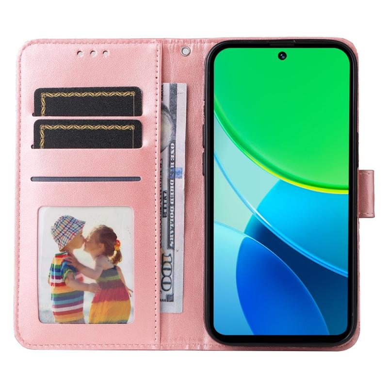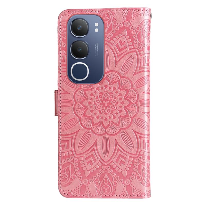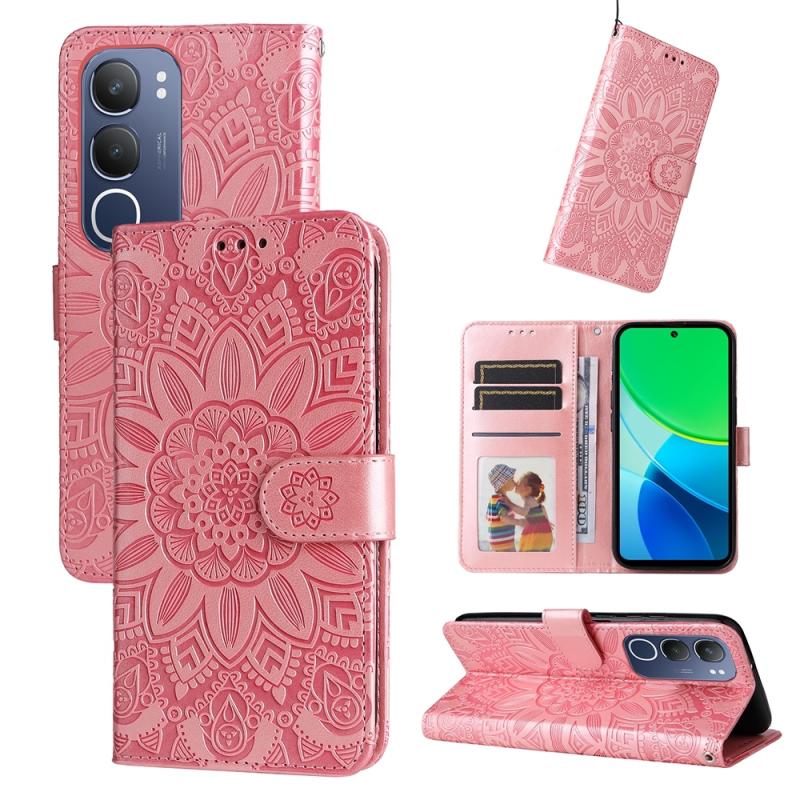 For vivo Y19s Embossed Sunflower Leather Phone Case(Rose Gold)