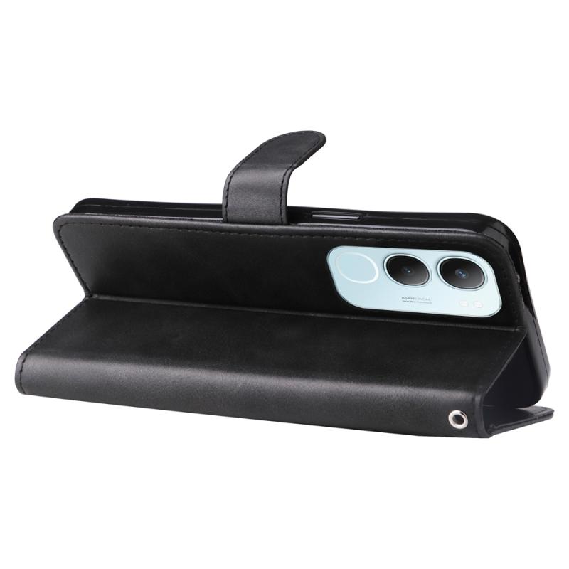 Θήκη τηλεφώνου από δέρμα με υφή μοσχαριού και φερμουάρ για vivo Y19s (Χρυσορόδινο)