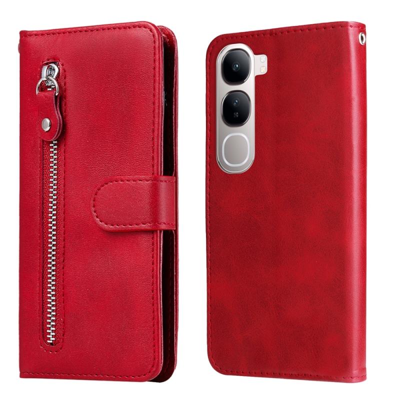 For vivo Y19s Fashion Calf Texture Zipper Leather Phone Case(Red)
