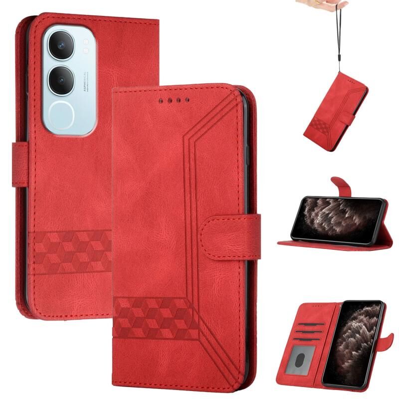 For vivo Y19s Global Cubic Skin Feel Flip Leather Phone Case(Red)