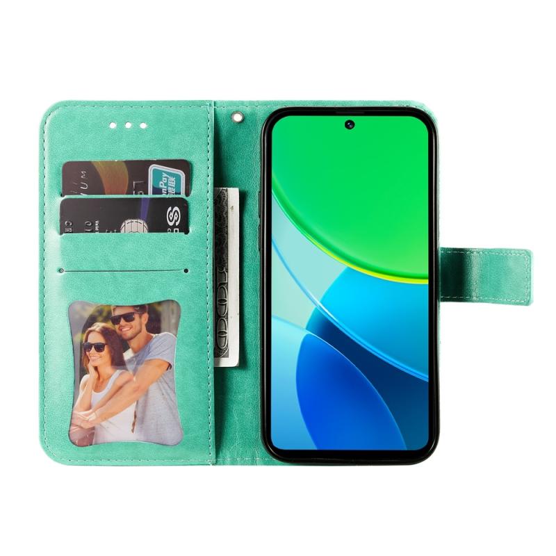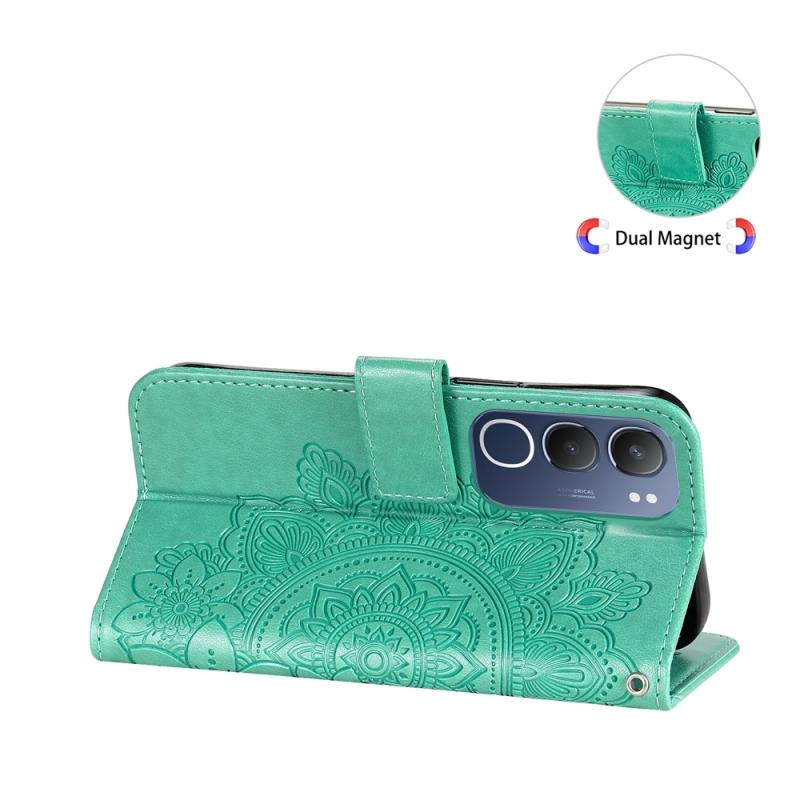 Θήκη τηλεφώνου από δέρμα με ανάγλυφα επτά πέταλα για vivo Y19s (Ανοιχτό Μωβ)