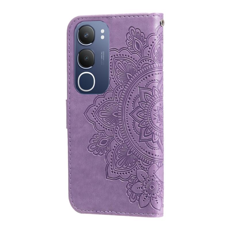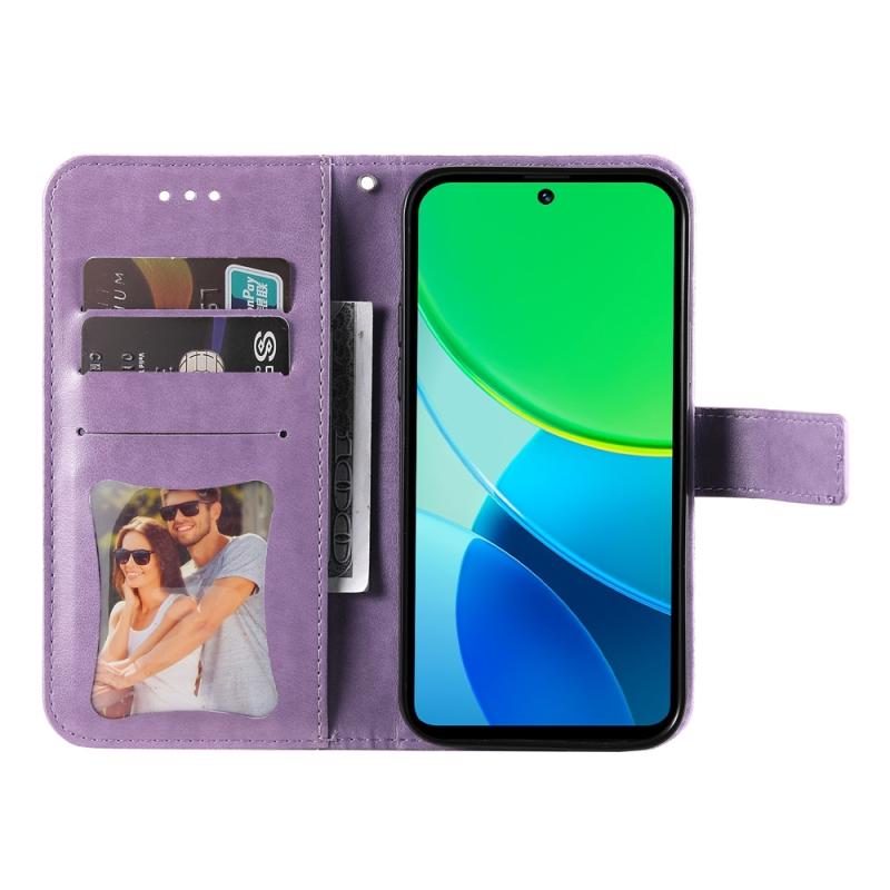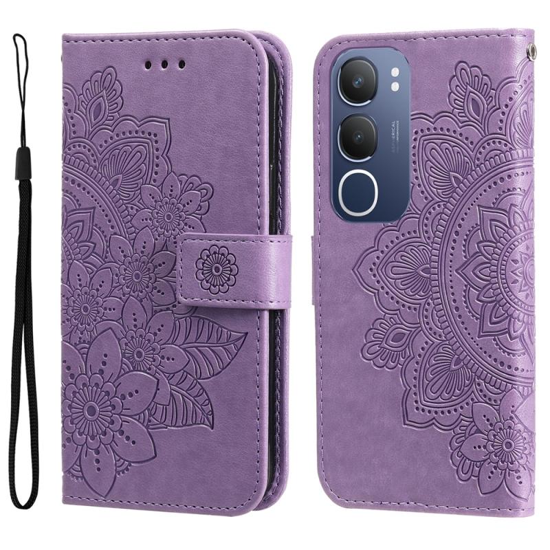 Θήκη τηλεφώνου από δέρμα με ανάγλυφα επτά πέταλα για vivo Y19s (Ανοιχτό Μωβ)