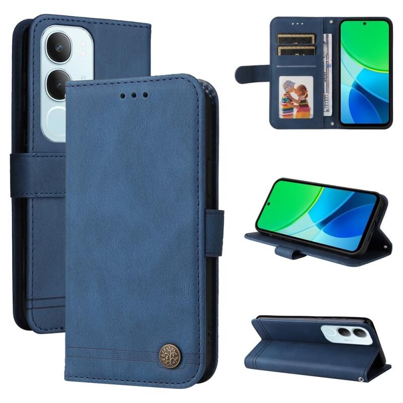 Θήκη τηλεφώνου για vivo Y19s, αίσθηση δέρματος, σχέδιο Δέντρου Ζωής, μεταλλικό κουμπί (Κόκκινο)