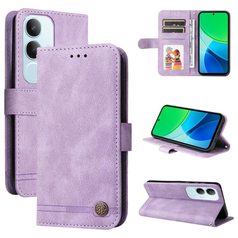 Θήκη τηλεφώνου για vivo Y19s, αίσθηση δέρματος, σχέδιο Δέντρου Ζωής, μεταλλικό κουμπί (Κόκκινο)