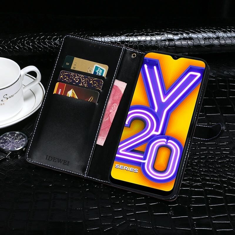 Για Vivo Y20 2020 idewei Δερμάτινη θήκη οριζόντιας αναδίπλωσης με υφή κροκόδειλου με βάση & υποδοχές καρτών & πορτοφόλι (Μαύρο) (Σκούρο μπλε)