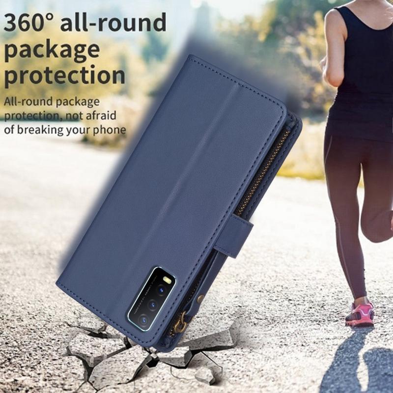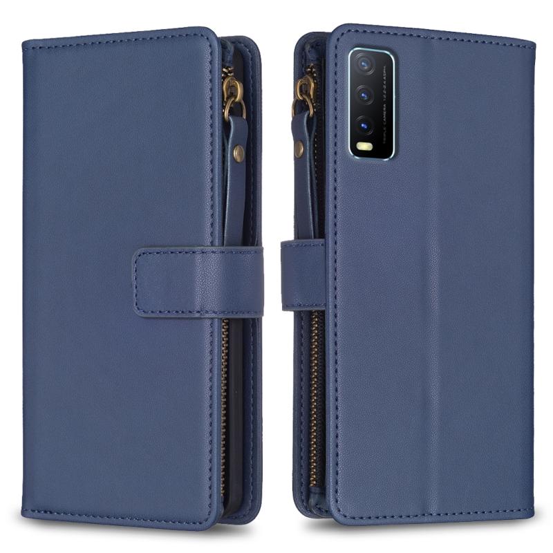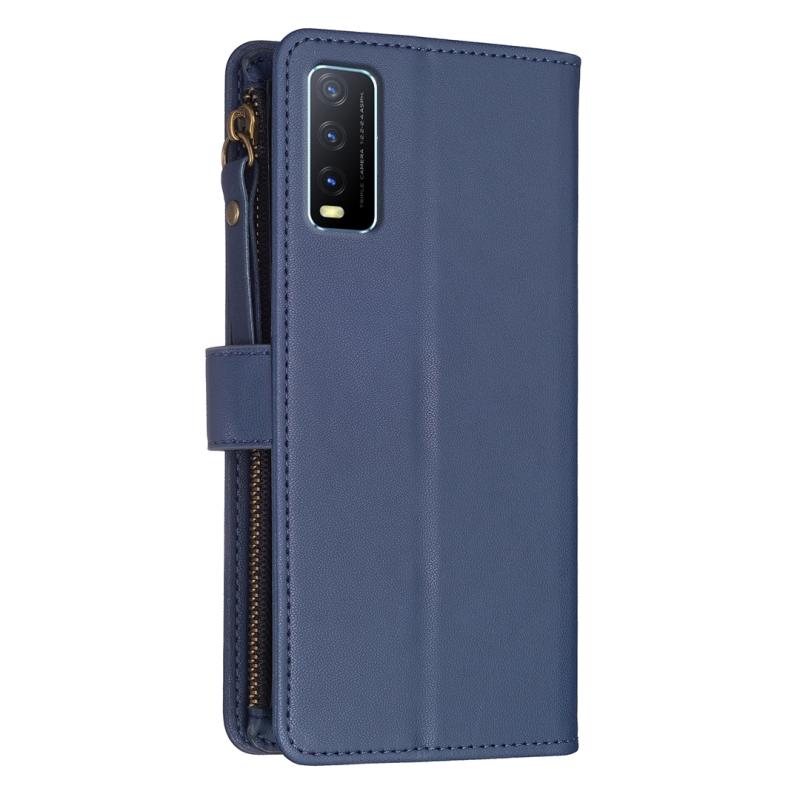 Για vivo Y20 Θήκη Τηλεφώνου Δερμάτινη με Φλις, με Φερμουάρ και 9 Θήκες για Κάρτες (Μπλε)