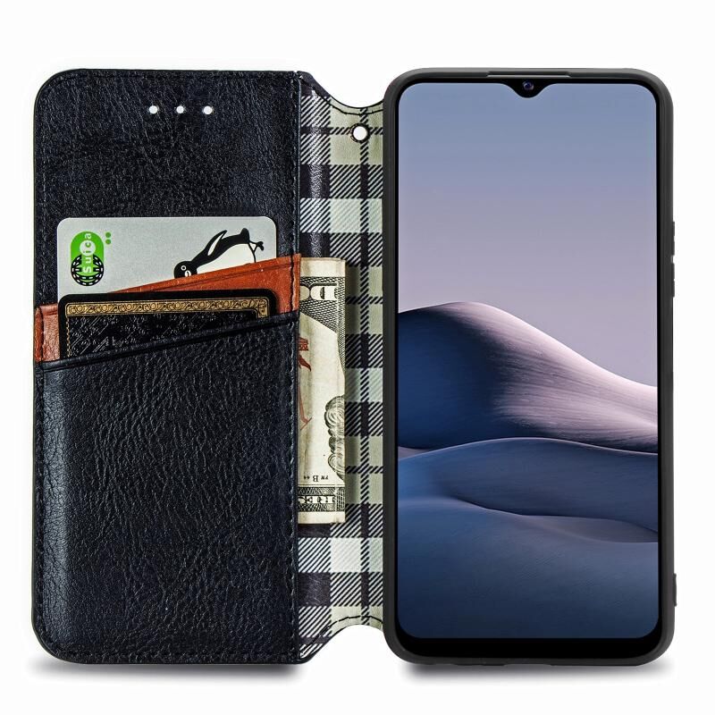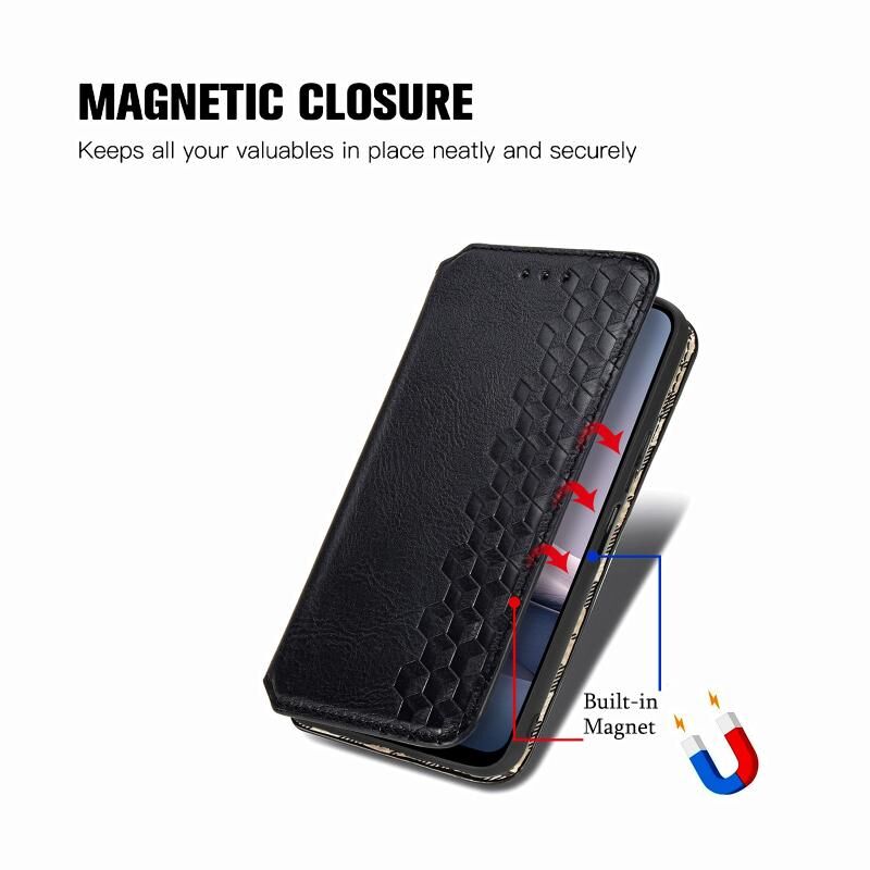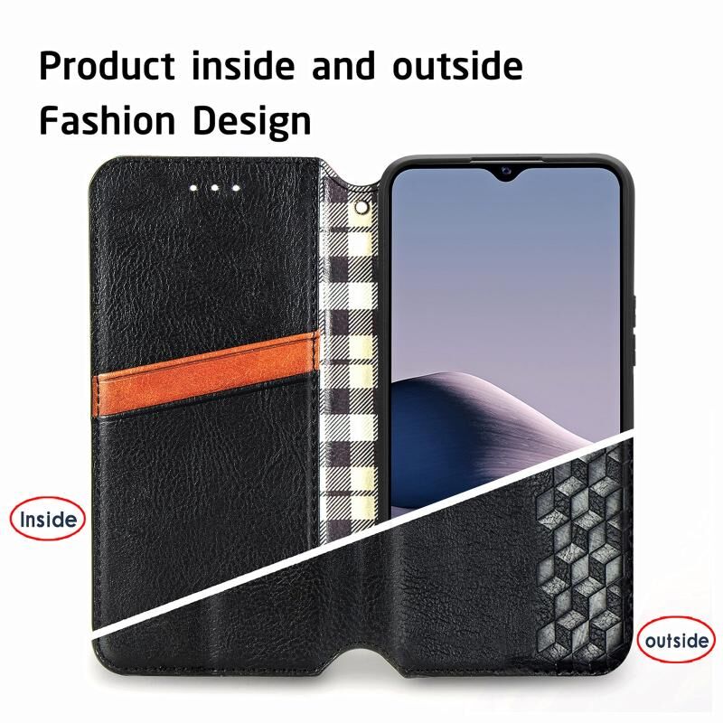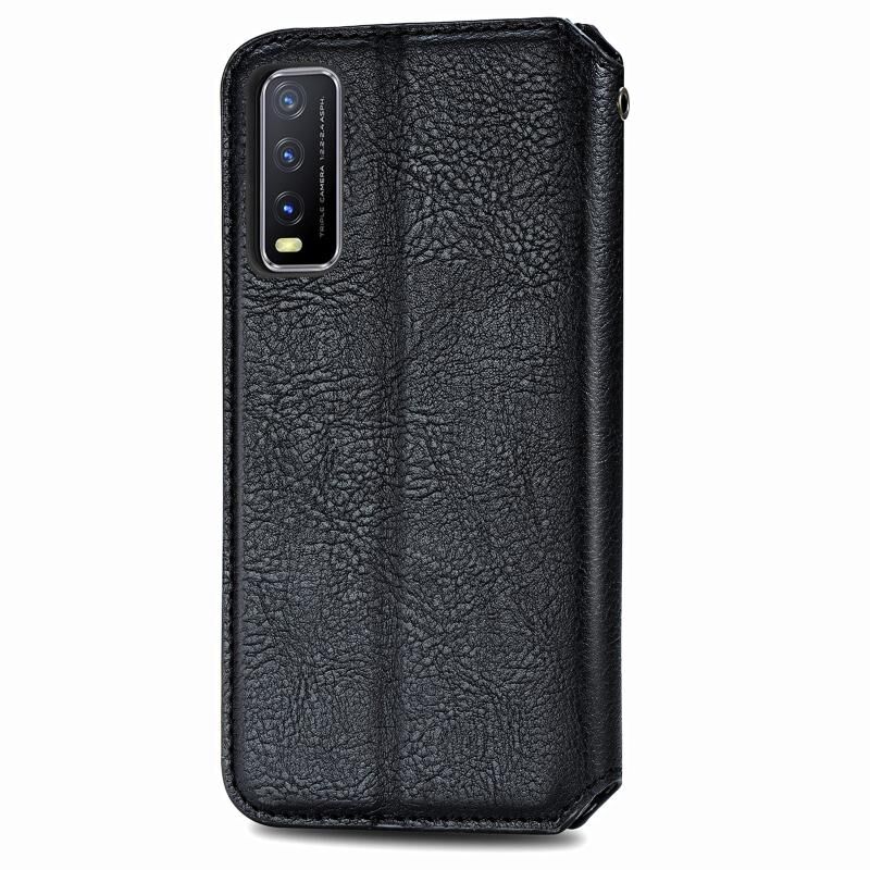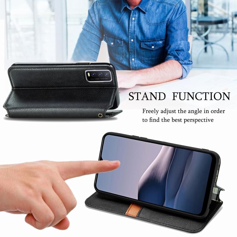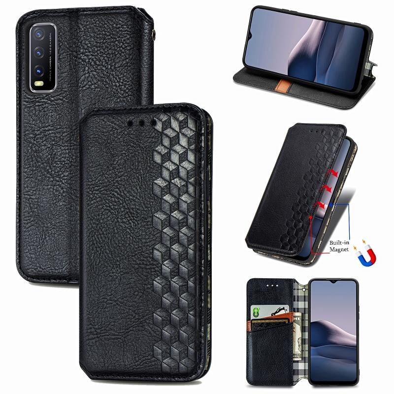 Θήκη για vivo Y20 Cubic Grid Πιεστή Οριζόντια Αναδιπλούμενη Μαγνητική από Δερματίνη PU με Στήριξη & Θήκες Καρτών & Πορτοφόλι (Μαύρο)