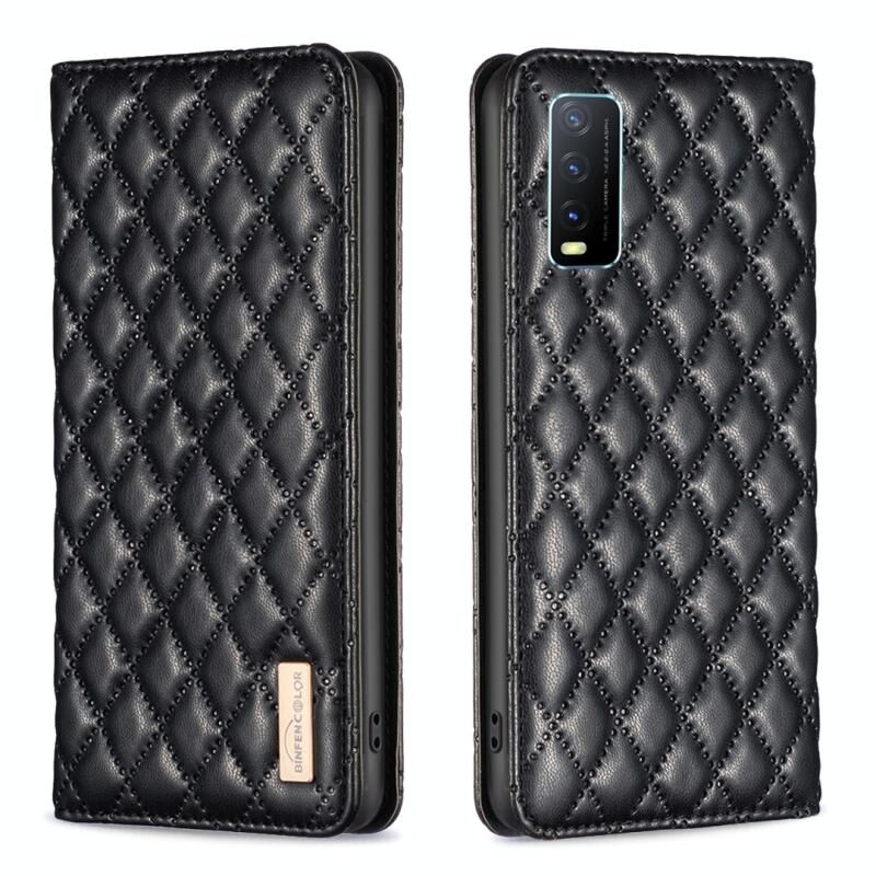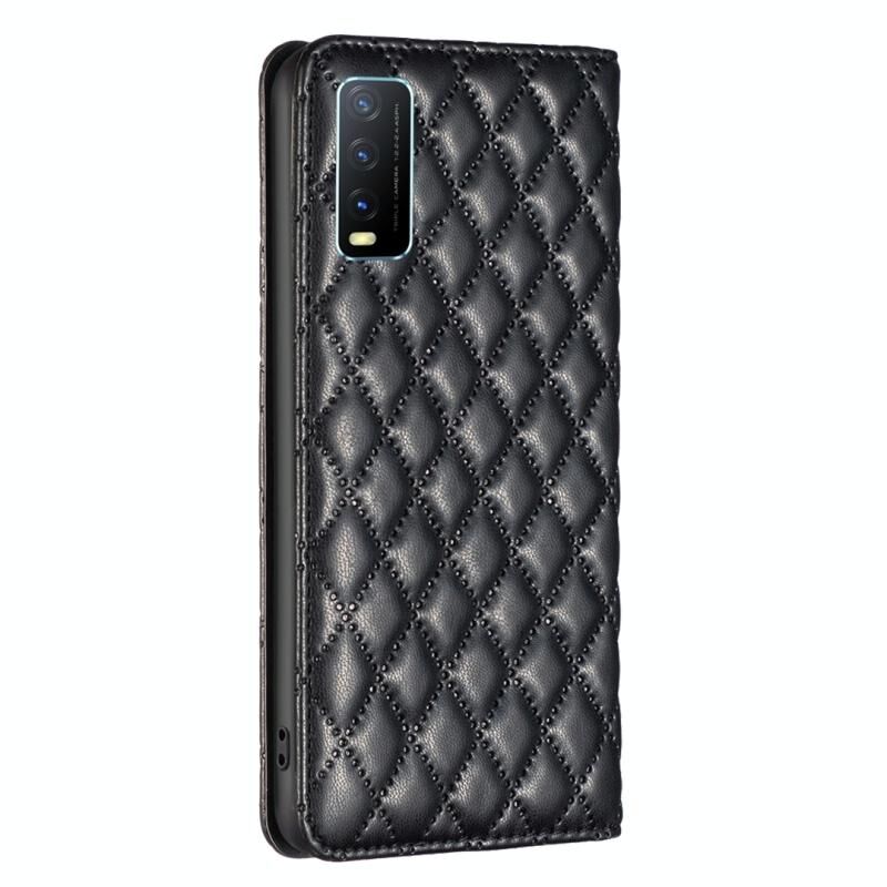 Θήκη τηλεφώνου για vivo Y20 Diamond Lattice Magnetic Leather Flip (Μαύρο)