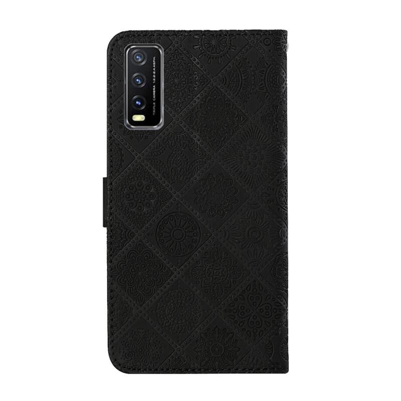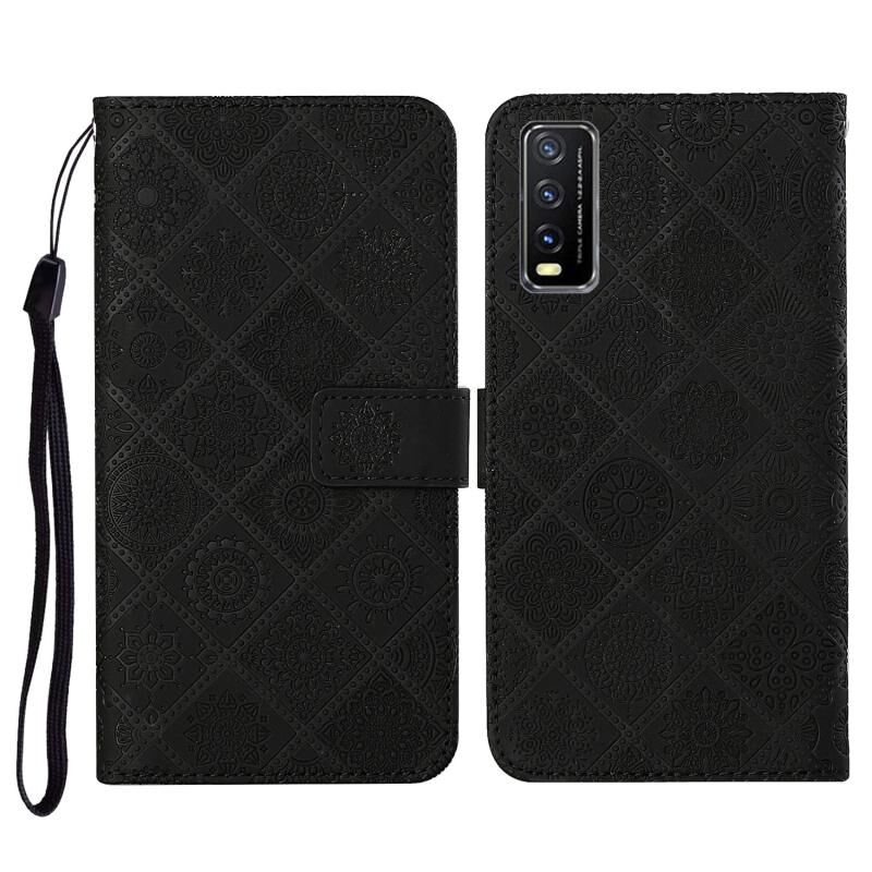 Για vivo Y20 Ethnic Style ανάγλυφο μοτίβο οριζόντια Flip δερμάτινη θήκη με κάτοχο & υποδοχές για κάρτες & πορτοφόλι & κορδόνι (Μαύρο)