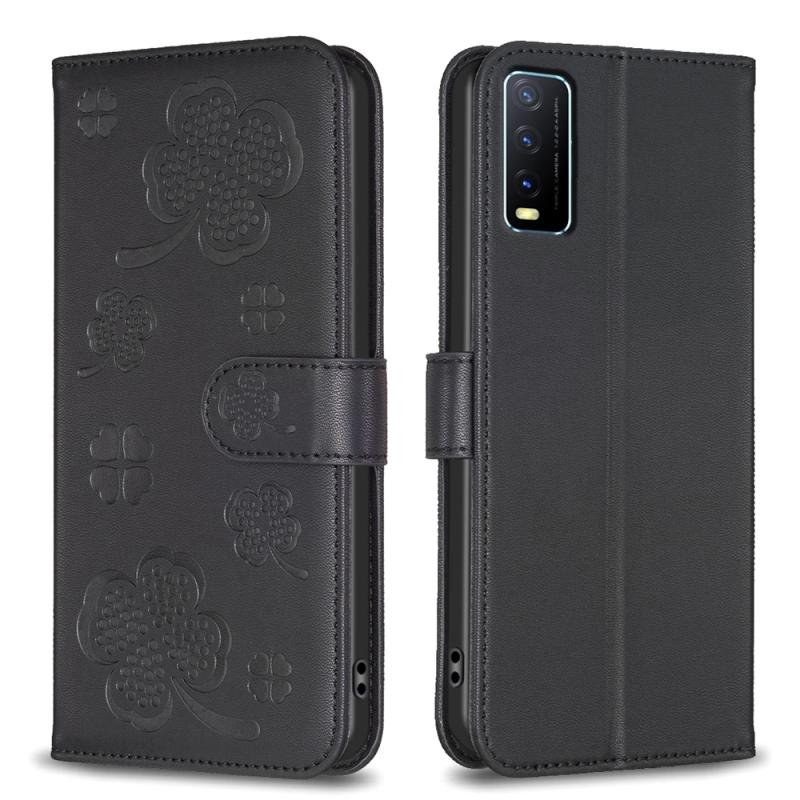 For vivo Y20 Four-leaf Embossed Leather Phone Case(Black)