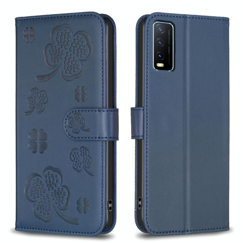 For vivo Y20 Four-leaf Embossed Leather Phone Case(Blue)
