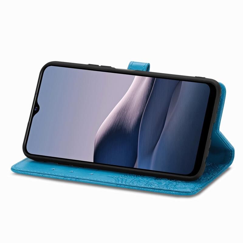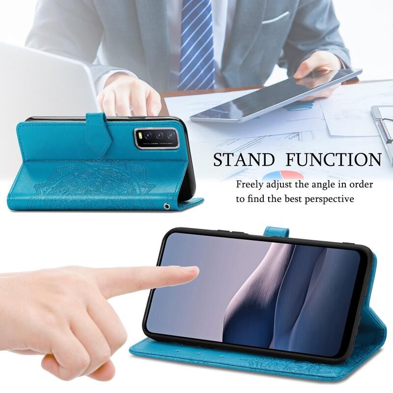 Θήκη δέρματος οριζόντιας αναδίπλωσης για vivo Y20 με ανάγλυφο σχέδιο Mandala, με βάση στήριξης / υποδοχή κάρτας / πορτοφόλι / κορδόνι (Μπλε)