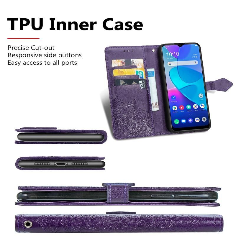 Θήκη για vivo Y20, Mandala Flower ανάγλυφη, οριζόντια, δερμάτινη με βάση & τρεις θήκες για κάρτες & πορτοφόλι & κορδόνι (Μαύρο)