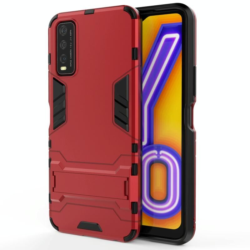 Θήκη προστασίας για Vivo Y20 PC + TPU αντικραδασμική με βάση στήριξης (Κόκκινο)