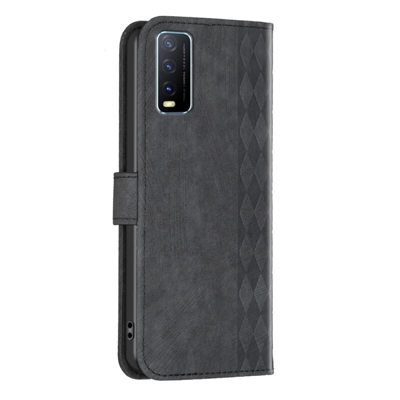 Για vivo Y20 καρό ανάγλυφη δερμάτινη θήκη τηλεφώνου (μαύρο)