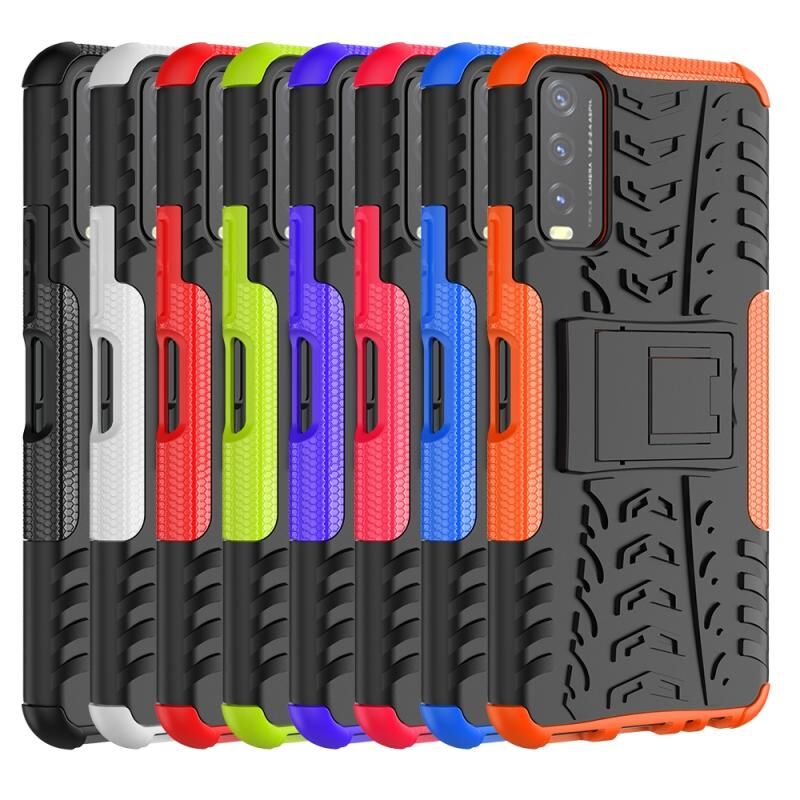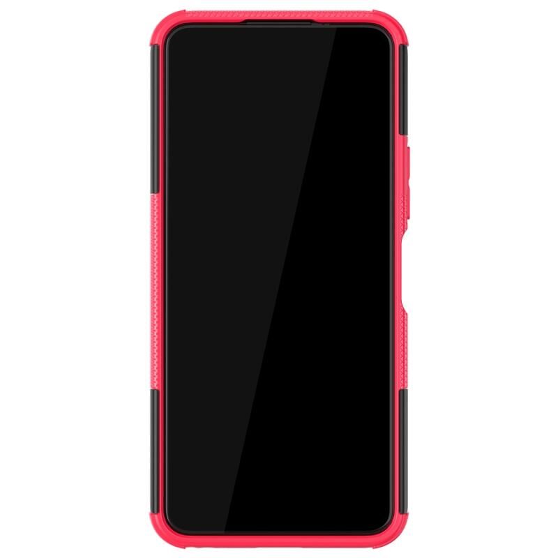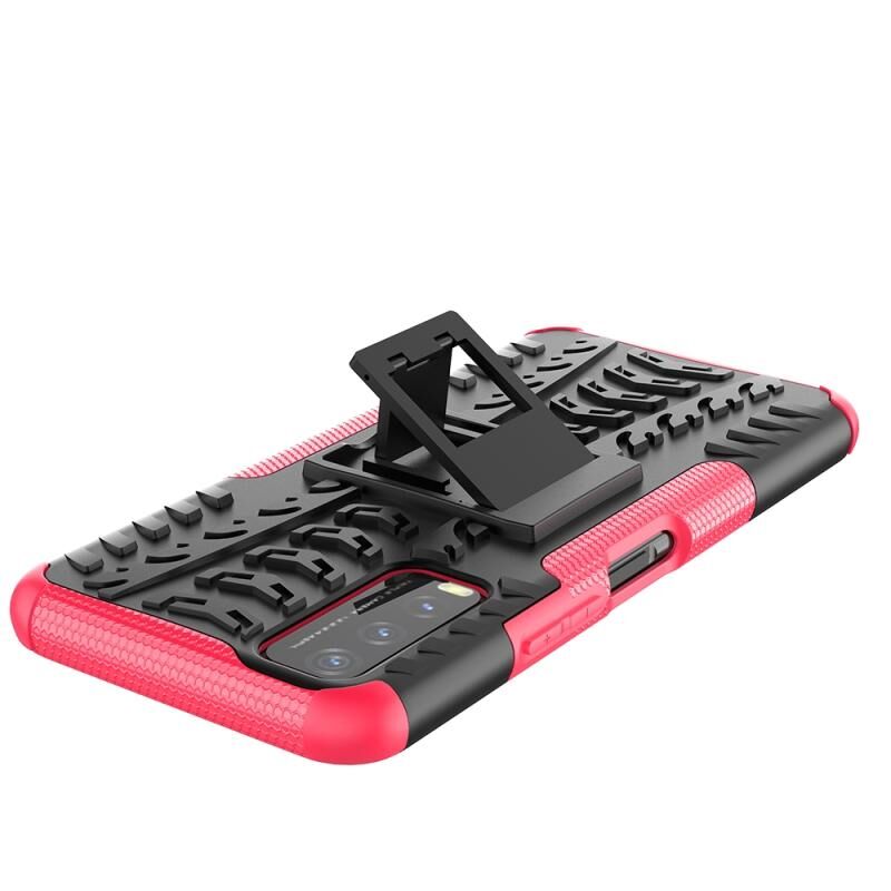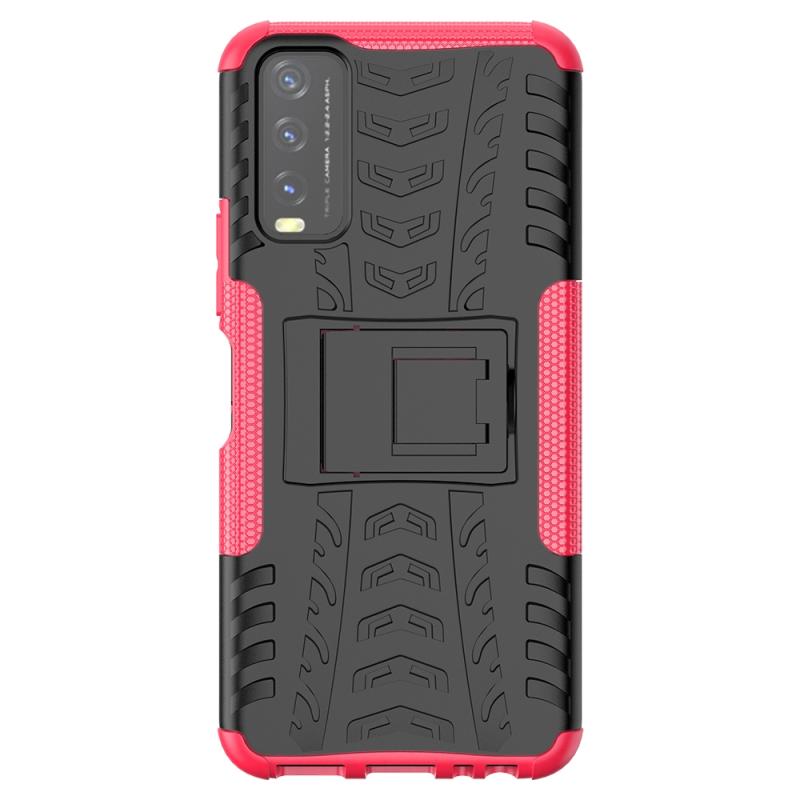 Θήκη προστασίας για vivo Y20 με υφή ελαστικού, αντικραδασμική από TPU+PC με βάση στήριξης (ρόζ)