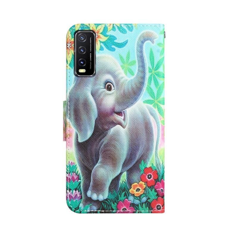 Θήκη τηλεφώνου από δέρμα με έγχρωμη σχεδίαση για vivo Y20 / Y12s (Ελέφαντας)